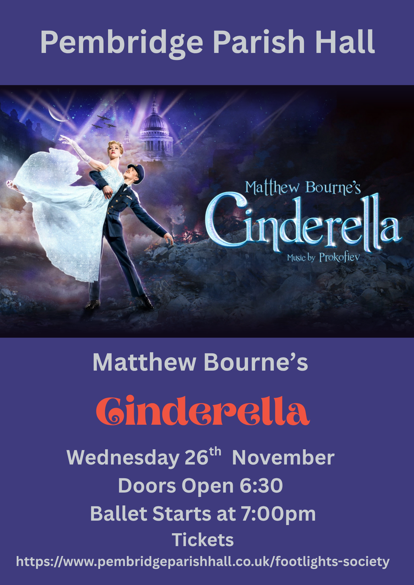 Matthew Bourne's Cinderella is a thrilling and evocative love story told in dance. A reinterpretation of the classic fairy tale, it features heart-stopping choreography and vivid, truthful characters. Set in London during the Second World War, the drama features Cinderella and a dashing young RAF pilot. Together just long enough to fall in love, they are parted by the horrors of the Blitz.