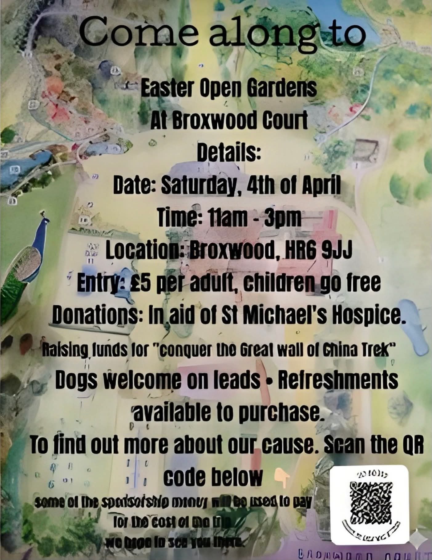 Easter Open Gardens at Broxwood Court Saturday 4 April 2026 11:00 15:00 Broxwood Court HR6 9JJ (map) Google Calendar ICS