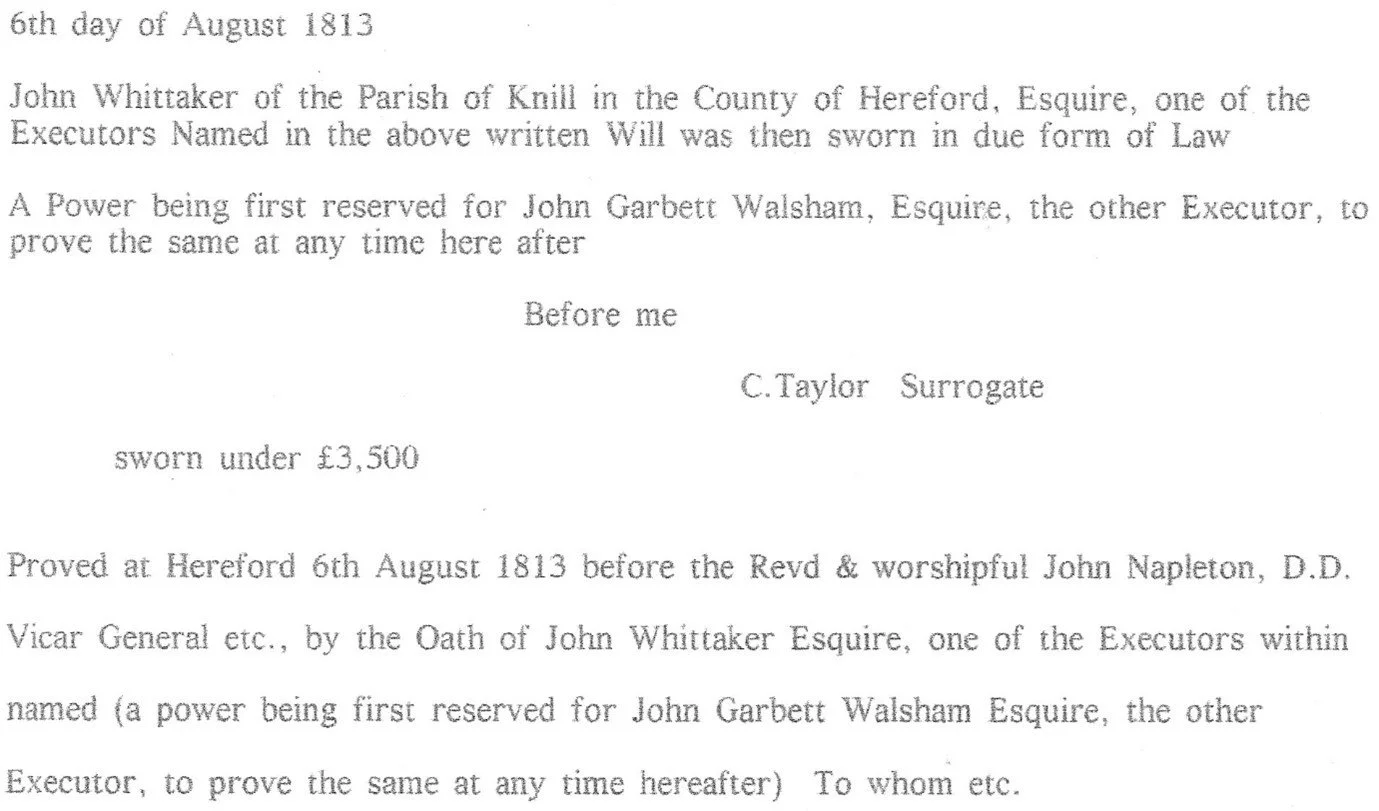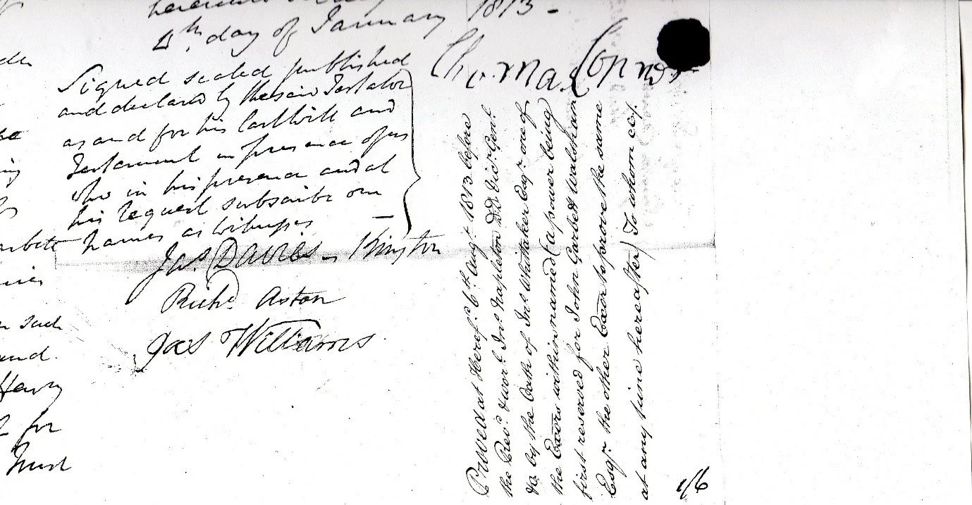 This great nephew Thomas, who was 9 years old at the time, received an annuity from the interest gained from the legacy of £1000 and the ‘rest of the real and personal Estate’ (which presumably is the Wytch property) also goes to this great nephew.