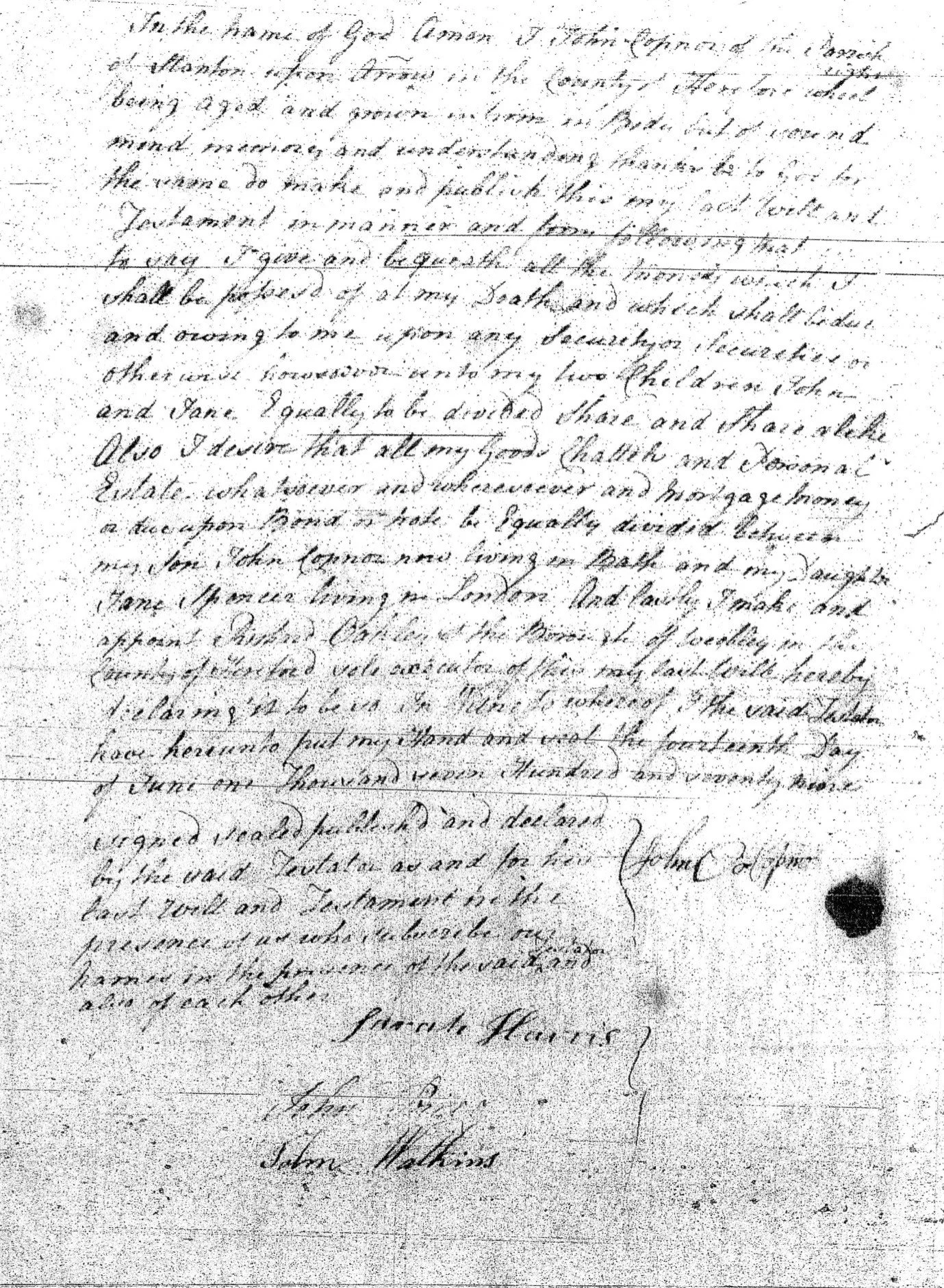 Will of John Copner 1781 (Age 77 years)