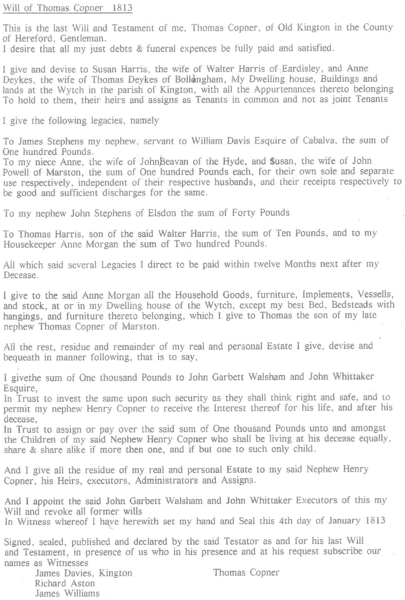 Will of Thomas Copner 1813 (Age 83 yrs)
