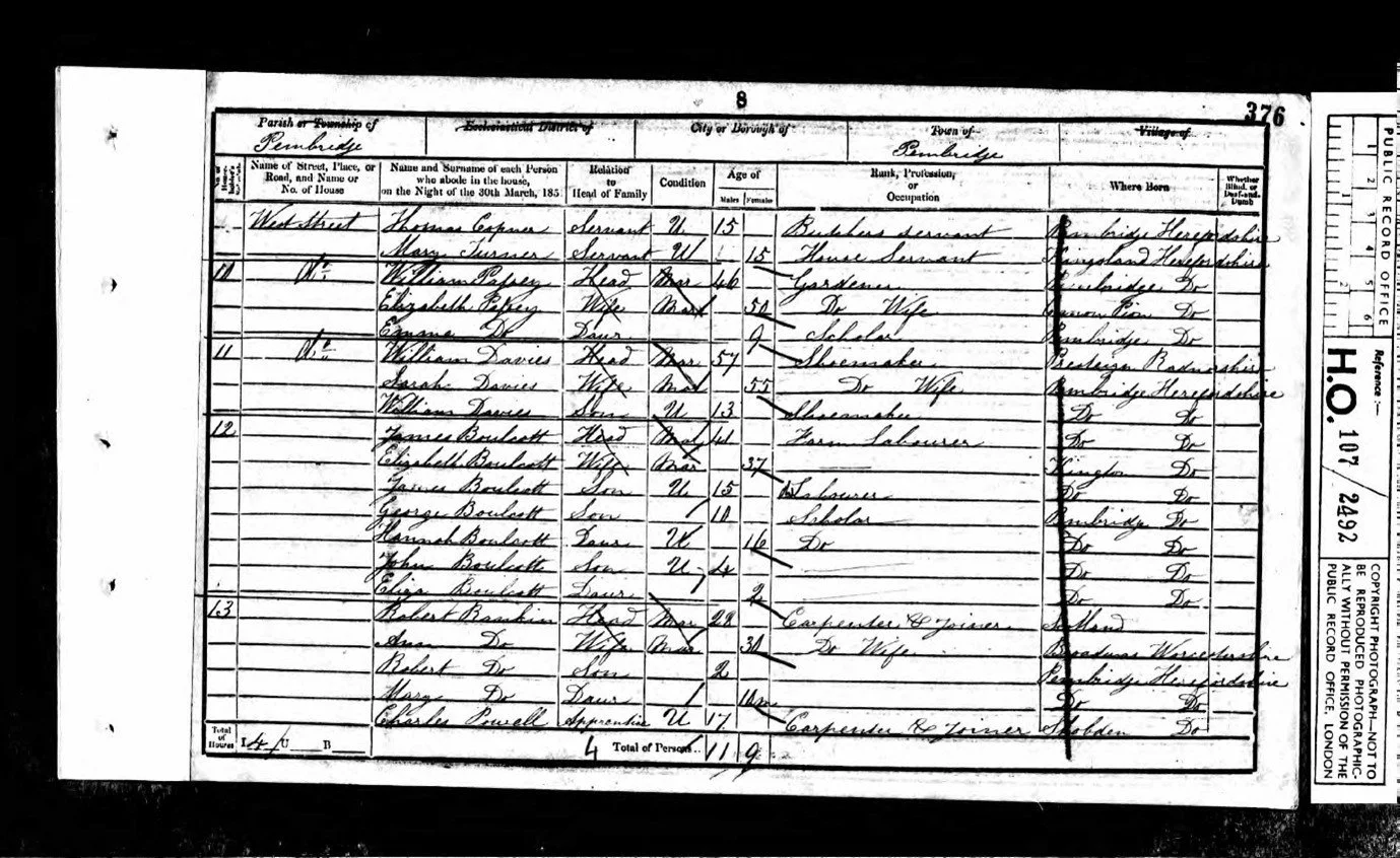 Joseph was the son of Henry and Sisley Copner. During this period the cottage industries of Pembridge, and the wool trade upon which the wealth of the area was based, were coming under increasing competition from industrialisation and cotton as the textile of choice.
